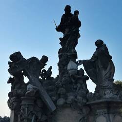 Sui lati del ponte, statue marmoree di accompagnano nella passeggiata.