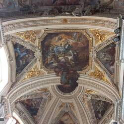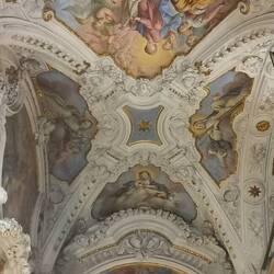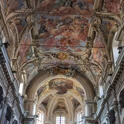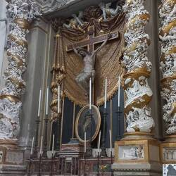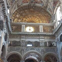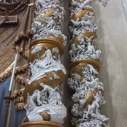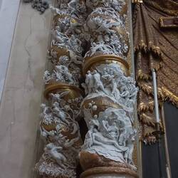 Bellissime colonne zoo-fitomorfe, in oro e stucco bianco, dei fratelli Serpotta in una cappella laterale.