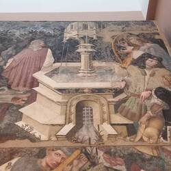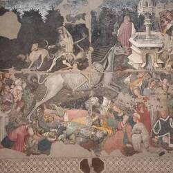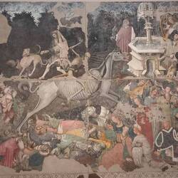 La Morte sul suo destriero irrompe in una festa e stermina tutti gli invitati, scoccando le sue frecce. L'opera si fa risalire alla prima metà delRead more