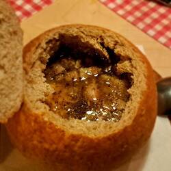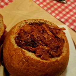 Ordino pierogi patate e formaggio, żurek (stavolta nel pane) e bigos, un nuovo piatto che non conosco, krautiRead more