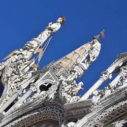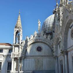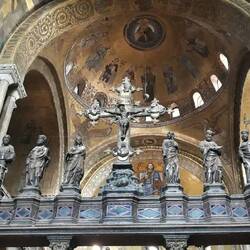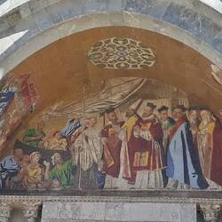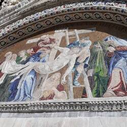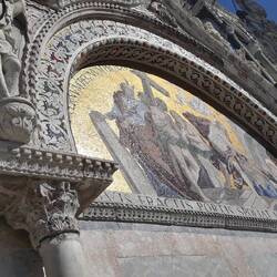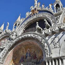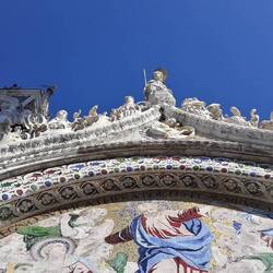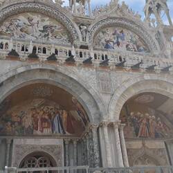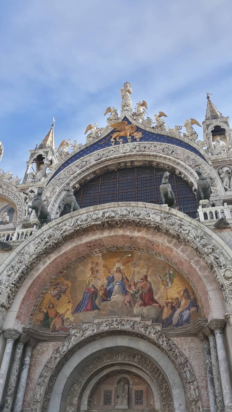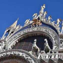 Una delle facciate di chiesa più famose del mondo. Sopra il portone centrale, coi suoi affreschi, troneggiano dei cavalli, sovrastati dal leone alato, simbolo cittadino.Leggi altro