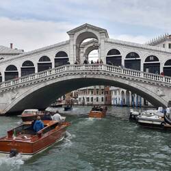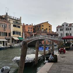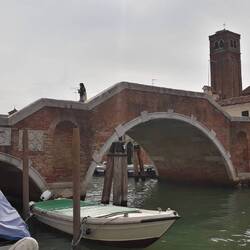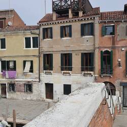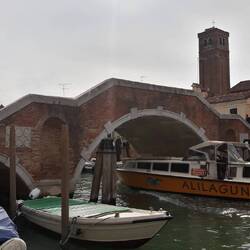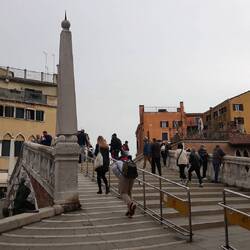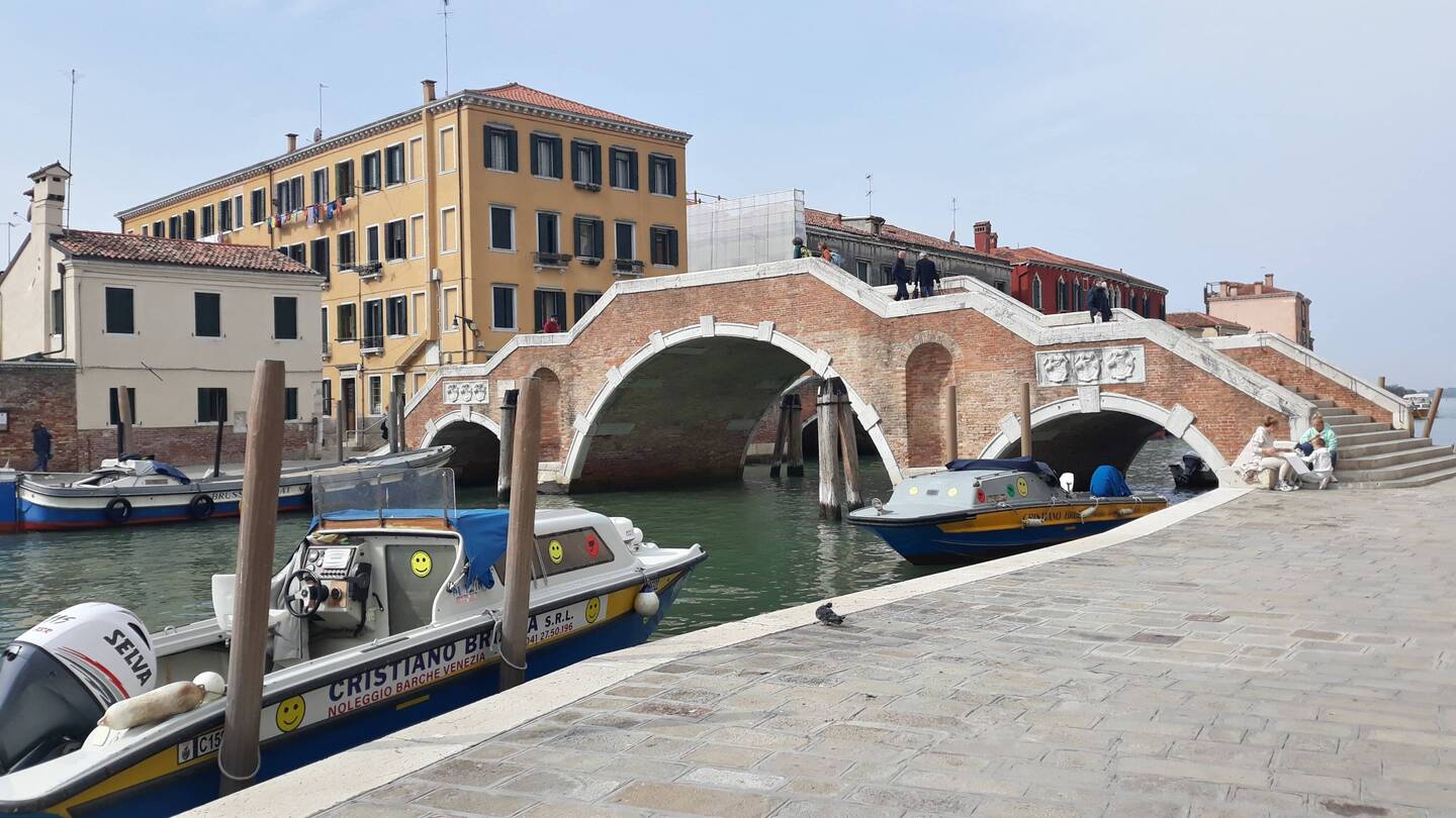 Cammina cammina, mi ritrovo su un immissario del canal Grande e attraverso questo strano ponte a tre archi, strutturato come un portone delle mura di una città.