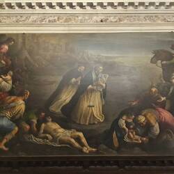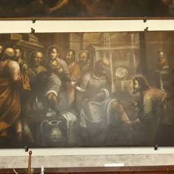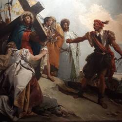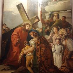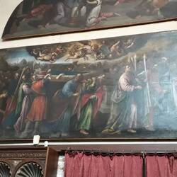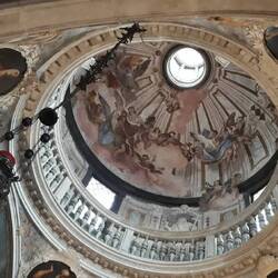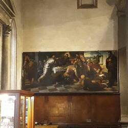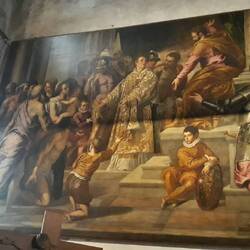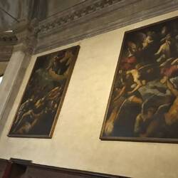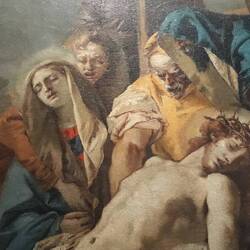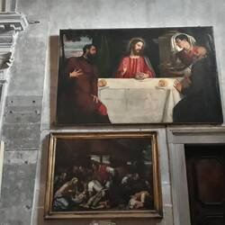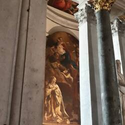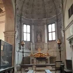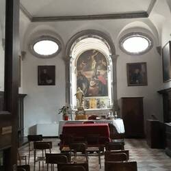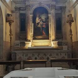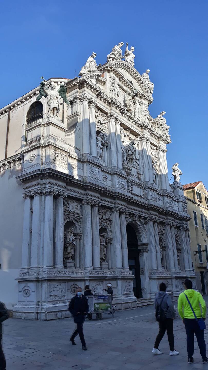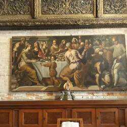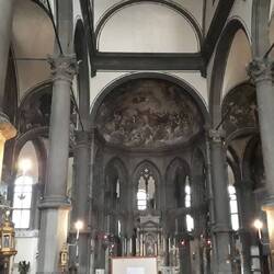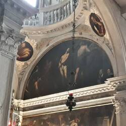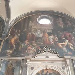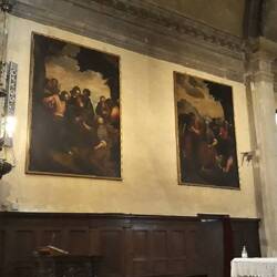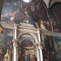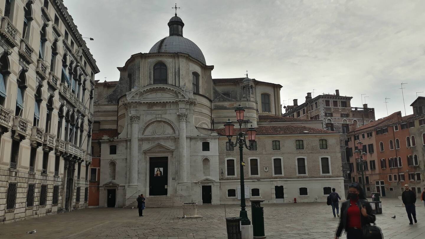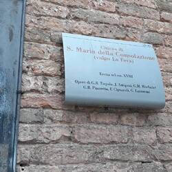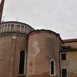 Chiesa senza facciata. All'interno una "Ultima cena" piuttosto movimentata di J. Tintoretto e, in un ambiente isolato, la via Crucis di Tiepolo.