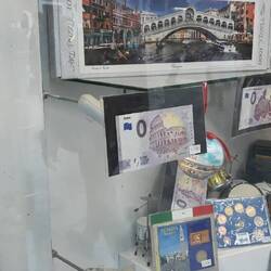 Non so se è più veneziano il tizio che rasa con la marea alta o la banconota da 0€ col Colosseo...