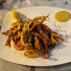 Ottima pasta con le alici e ottima frittura! Con bei tocchi di pesce!