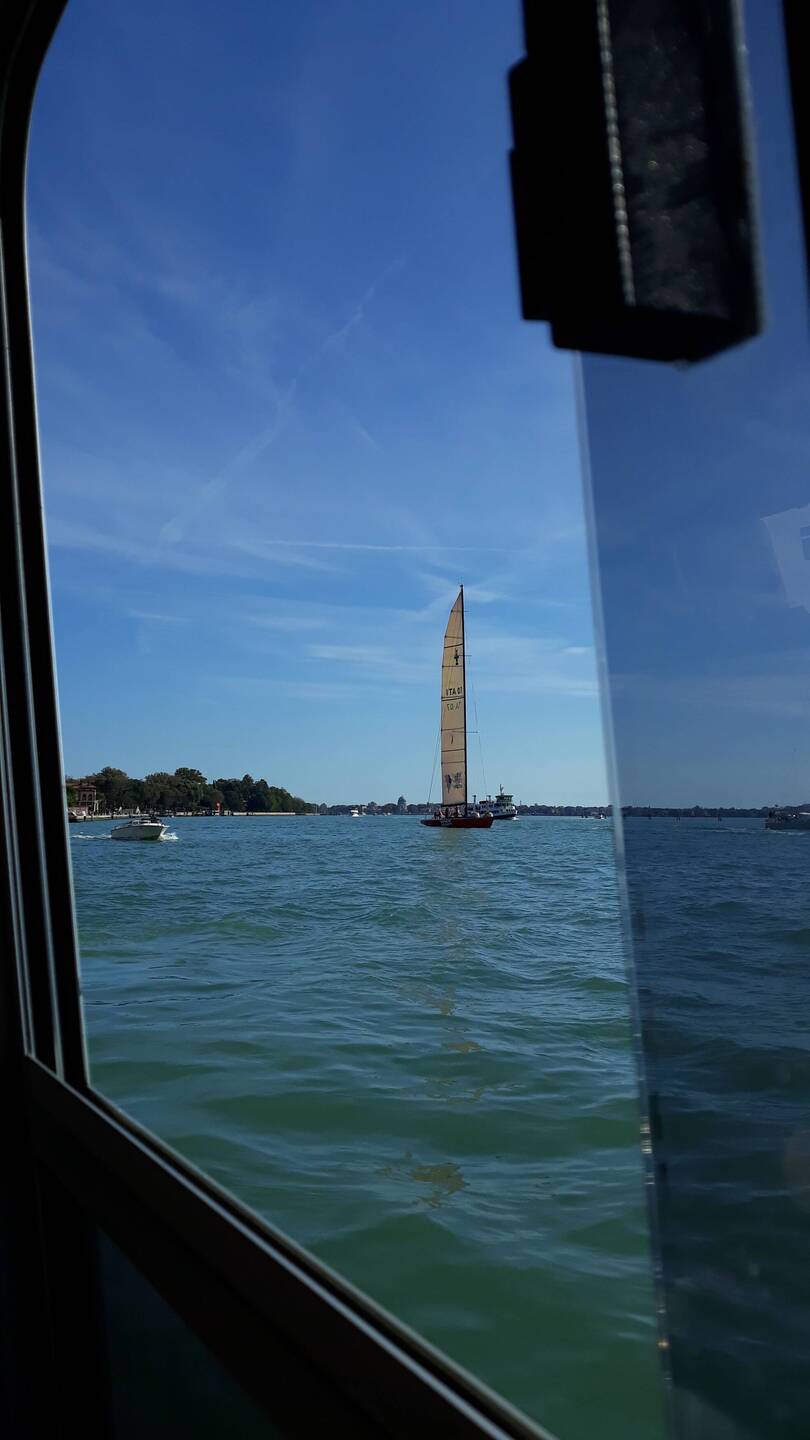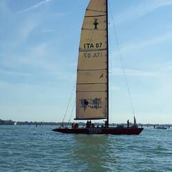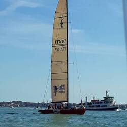 Un ultimo giretto in laguna, visto che ce lo ho pagato. Incrocio una barca che ha partecipato alla coppa America alcuni (parecchi) anni fa, la prima italiana: Azzurra!
