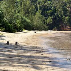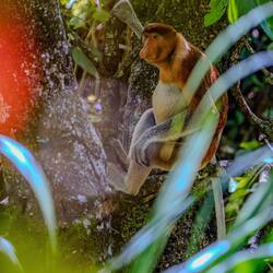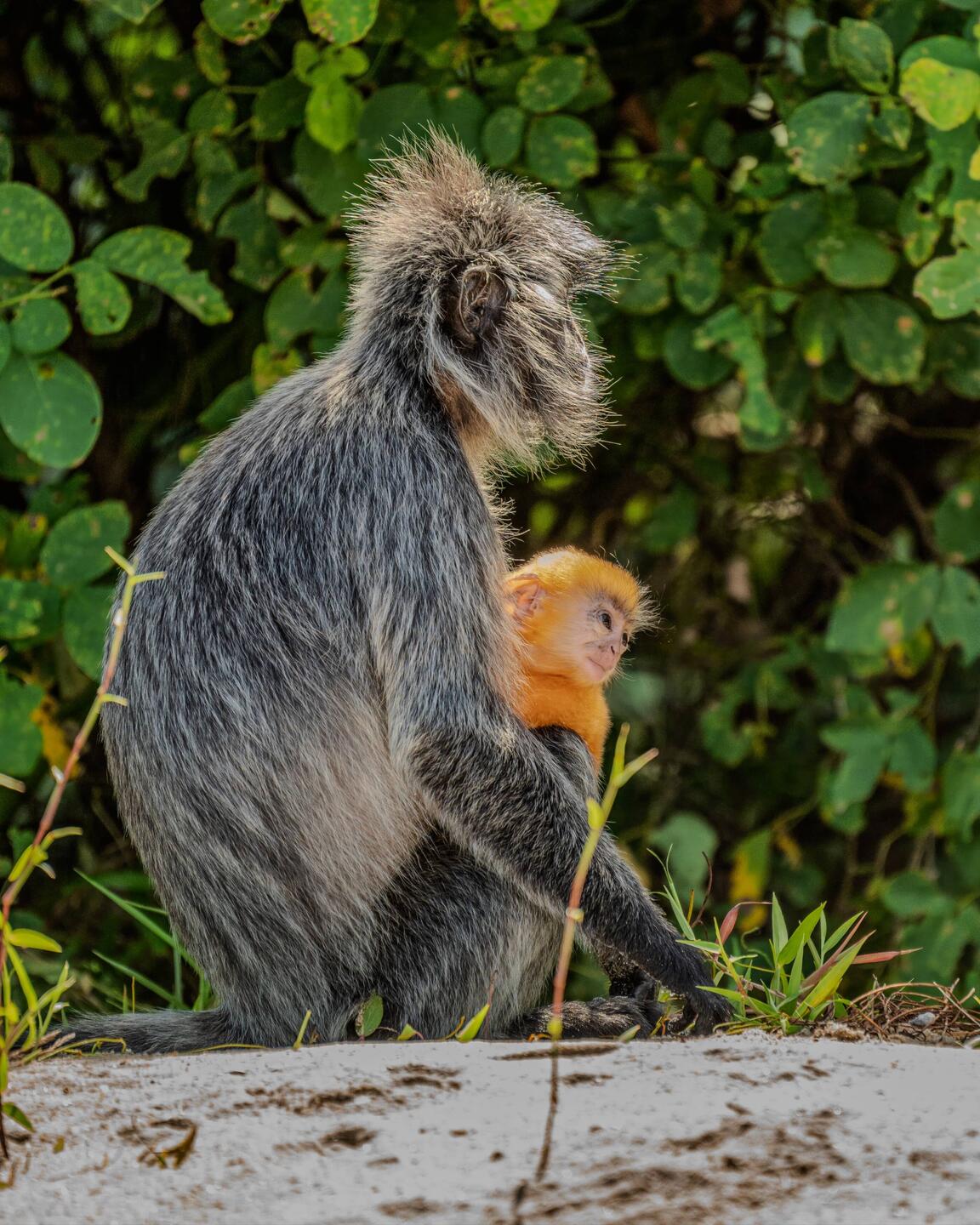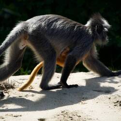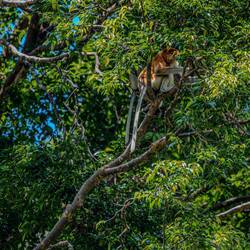 Dschungeltour, Nasenaffen, Silberner Haubenlangur mit Baby (orange), Bartschweine und Flughörnchen