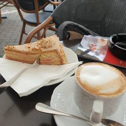 Es soll ein entspannter, ruhiger Sonntag werden. Geschlafen haben wir gut. Das Frühstück war super, aber italienisch süß. Croissants, eine Art Linzer Torte, Marmelade. Der Cappuccino war ok.