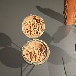 Man kommt nicht wirklich nah ran und ich bin kein Kunstexperte, aber ich konnte meinen Blick nicht von der Madonna wenden. Ein so über die Maßen schönes Gesicht mit ebenmäßigen jugendlichen Zügen und einer reifen Ausstrahlung. Jesus ist dagegen ein großes pummeliges Kind, das m. E. nicht gut zur Madonna passt. Aber irgendwie wirkt sie so noch filigraner.