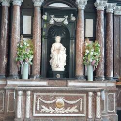 In die Kirche Unser lieben Frauen muss man gehen, mit Eintritt, dann kann man die einzige Madonnenstatue Michelangelos sehen, die nicht in Italien steht. Der Überlieferung nach hat er für geringeres Geld die Freiheit erhalten, die Madonna in einer Art darzustellen, die ihm behagte. Das Ergebnis ist eine ca. 150 cm hohe Statue aus Carraramarmor, die eine anmutige wunderschöne Maria in hockender Haltung zeigt, die ihr Kind nicht auf dem Arm trägt, sondern zwischen ihren Beinen.