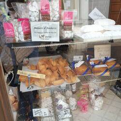 Ich habe dem nichts weiter hinzuzufügen. Es ist ein ansehnlicher Bau, der massiv über der Stadt tront, die sich malerisch an den Ufern des Flusses entwickelt hat. Schön, dass die Franzosen nicht allem Alten gleich eine Renovierung überhelfen. So kann man immer mal wieder an alten Fassaden und Wandbildern mit dem Blick hängenbleiben und sich am Schiefergrau der nicht energetisch sanierten Dächer erfreuen. Der Markt hatte etwas von denen bei uns, aber die Produkte waren zum Teil originaler. Käse verkostet, Wein und Würste gekauft und Dosen für Camembert.