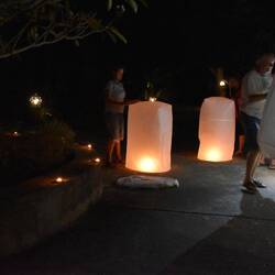 Ein wunderschöner letzter Abend - im zwölften Vollmond des Jahres wird Loy Krathong, das Lichterfest, gefeiert.