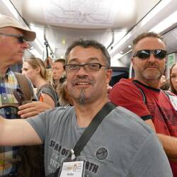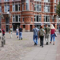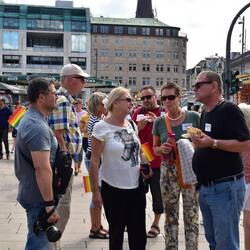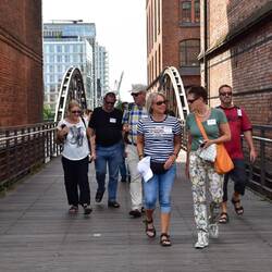 Im Gedränge an der Hafenfähre kann man sich schon mal verlieren - aber in Finkenwerder wurde das Trüppchen natürlich wiedervereint.