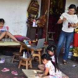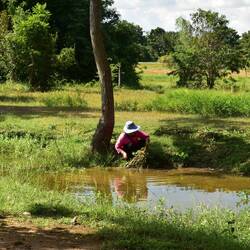 Gute 3 km bis zum Dorf, ringsum Reisfeld und Ruhe. Wobei - MomentBaca lagi