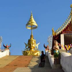 Auch hier in Doi Saket sind wir schließlich nicht zum ersten Mal, staunend beobachten wir, wie sich aus dem schon immer sehenswerten Tempel hoch am Berg inzwischen ein ganzer "Heiligenpark"Baca lagi