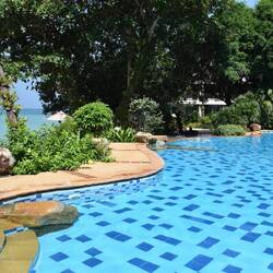 Die Hotelanlage war riesig, weit auf den Berg hinaufgebaut und fastMeer informatie