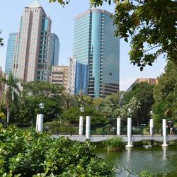 Wir bummeln durch den Bird Park, in riesigen begehbaren Volieren gibt es viel zu sehen, und durch den Hongkong Park. Hier ganz in der Nähe stehen die Hochhäuser des Banken- und Geschäftszentrums.