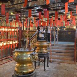 Mitten im Stadttrubel, fast versteckt zwischen den hohen Häusern, liegt der Man Mo Tempel, der zwischen 1847 und 1862 erbaut wurde und damit heute zu den ältesten Bauwerken der Stadt gehört.