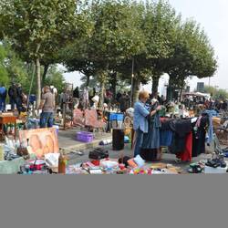 Am Samstag Morgen ist Flohmarkt am Ufer des Mains, die Skyline der City am anderen Ufer allerdings verschwimmt im Dunst.