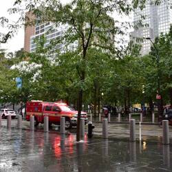 Nach einer Siesta im Hotel schließlich machen wir uns gegen 17 Uhr auf zum Summit One Vanderbilt und kommen dort ziemlich durchnässt an - es ist noch immer kein Streifen Licht am Himmel.