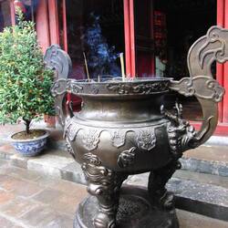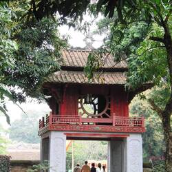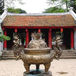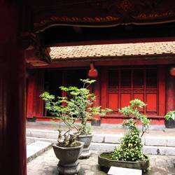 Beeindruckend ist der Literaturtempel mit seiner strengen Architektur und den vielen Höfen - von Ruhe hier aber keine Spur. Jeder Tourist, der Hanoi bereist, ist hier.