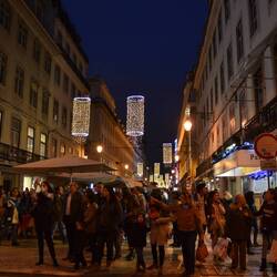 Abendstimmung in der Baixa (Unterstadt), der Fußgängerzone Rua Augusta und am prächtigen Praça do Comércio.