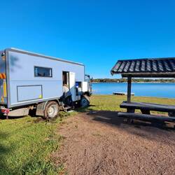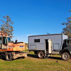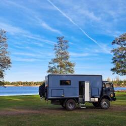 Wikingerdorf, Bronzezeitgrab, dann WoMo versenkt im Rasen, dank Helfer wieder flott.