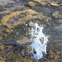 Drei Nächte wieder beim Petrified Forest, viele Versteinerungen, Sturm, Blowhole durch versteinerte Bäume. Wanderung der Küste entlang.
