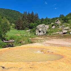 Wanderung vorbei an farbenfrohen, saftigen Blumenwiesen, 4 km zu den "heissen" Quellen von Jermuk, die kalt oder lauwarm sind. Wunderbare Gegend. Anschliessend Wasserfall von Jermuk, eher bescheiden.