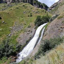 Beim Frühstück draussen fliegen Geier vorbei, sehr eindrücklich! Dann per Velo zum Wehrturm in Pansheti und zum Start Wanderung zu den Arsha Wasserfällen. Schön, steil, viele Kröten.