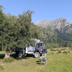 Wunderbaren, ruhigen Stellplatz hinter Mazeri gefunden. Rundum hohe Berge. Wanderung zu den Shdugra Wasserfällen (ca. 7 km). An den Abenden Lagerfeuer mit Andreas und Mario. Pia läuft zum Meziri SeeRead more