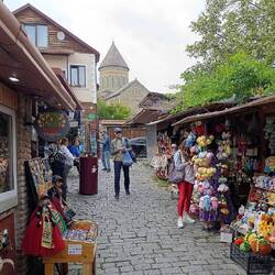 Andy verabschiedet sich, dann mit Taxi zum Waschsalon in Tbilisi. Libanesisches Mittagessen in der Fussgängerzone. Mit der Metro zum Einkaufen auf dem Markt. Mit Metro und Taxi zurück nach Mzcheta.