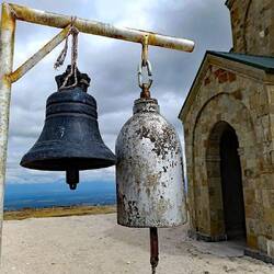 Regenbogen am Vorabend in Sagarejo, dann Fahrt durch stürmische georgische Hügelsteppenlandschaft zum Kloster David Gareji. Übernachtung in Udabno.