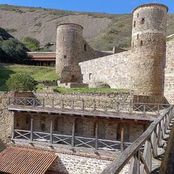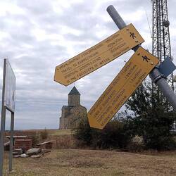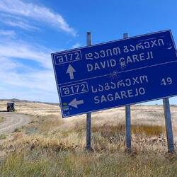 Vorbei an verlassenen Militärkasernen zur Kirche in Zemo Kedi. Dann nach Dedopliszkaro zur Adlerschlucht. Mehrere Gänsegeier beobachtet.