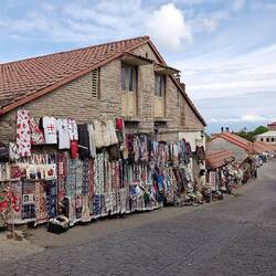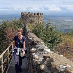 Touristenort Sighnaghi. Stadtmauer mit Wehrtürmen. Dann Stellplatz in Lagodekhi (Zemo Khiza) gefunden.