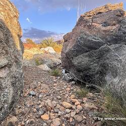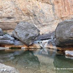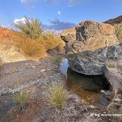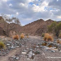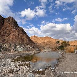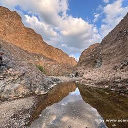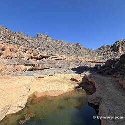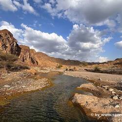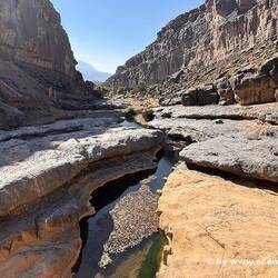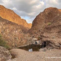 Drei Kilometer Wanderung durch das Wadi Shawka zu den Pools, dann wieder zurück . Wunderbare Gegend, immer noch Wasser im Bachbett, leider voller Müll.