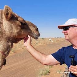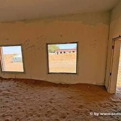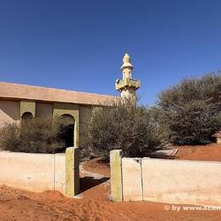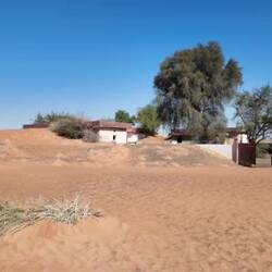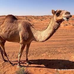 Heute gehts zum Geisterdorf in Al Madam. Wir sind die einzigen Besucher, Eintritt ist gratis. Dafür werden wir von einer Herde Kamele besucht.
