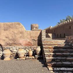 Fahrt nach Yankul, Mittagsrast und Besuch des Schlosses Bait Almarah. Wirklich empfehlenswert! Kostet 3 OMR Eintritt. Haben kein Bargeld, nach etwas traurig Schauen kommen wir gratis rein…