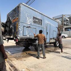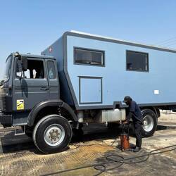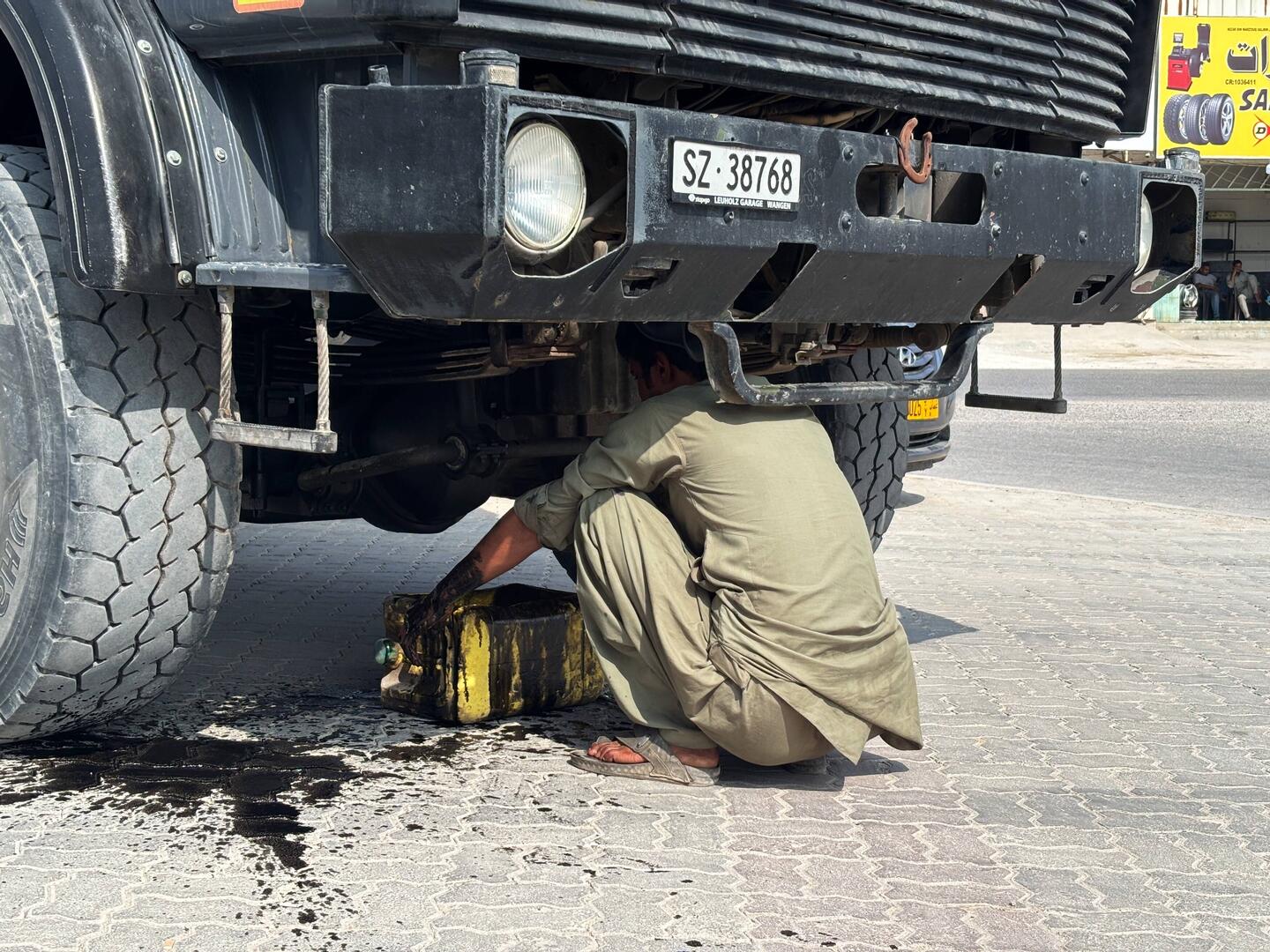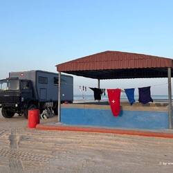 Heute gabs mal Wellness fürs WoMo in Salalah: Ölwechsel, waschen, fetten!