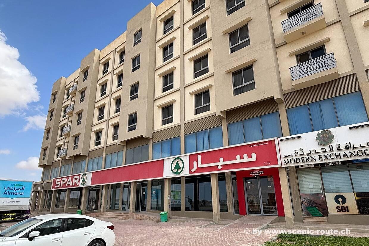 Einkaufen im Spar in Duqm, Vorräte waren leer. Dann zu den Sugar Dunes. Echt cool! Seht selbst!