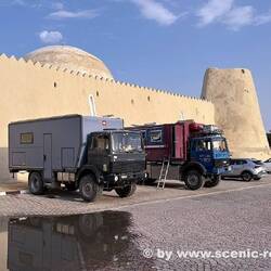 Einkaufen in Ibri sowie Besuch beim Ibri Castle. Dann durch die Wüste, vorbei an Ölquellen in Richtung saudi-arabische Grenze. Unterwegs Stellplatz bei Dünen und Kamelen gefunden.