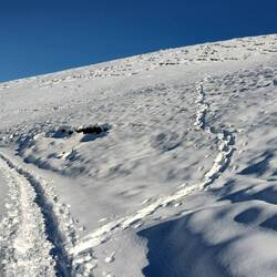 Mitten auf dem Steig in einer niesche im Fels fand ich viele viele viele kleine Knoch, irgendein großer Vogel hat dort wohl seinen Fredsplatz.