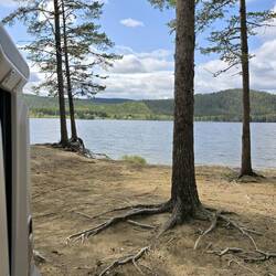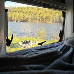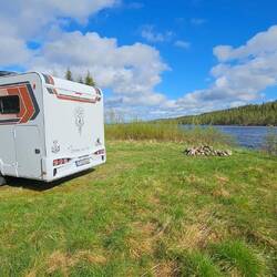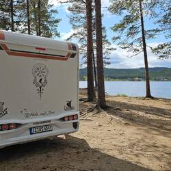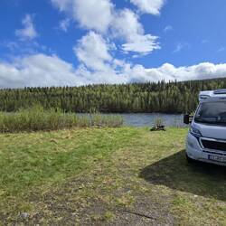 Gestrandet sind wir diesmal an einem niedlichen Stellplatz am Klövsjön.