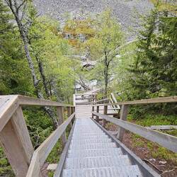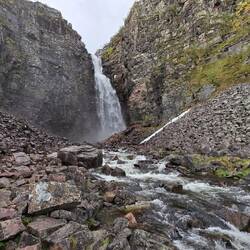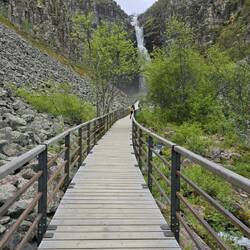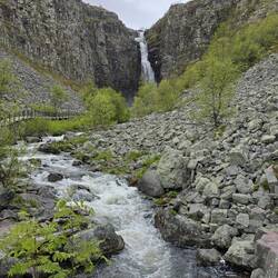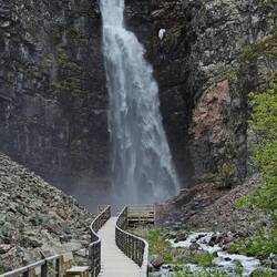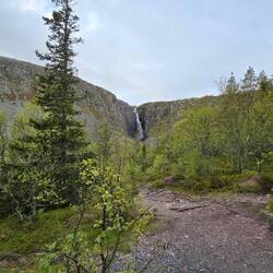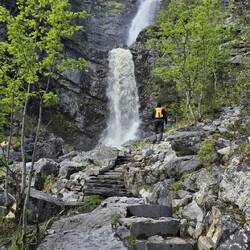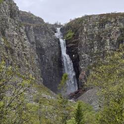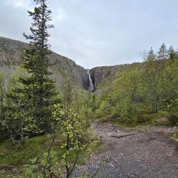 Menschenleer durften wir den Anblick des Wasserfalls Njupeskär genießen.