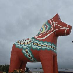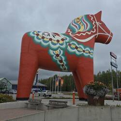 In Avesta legten wir wieder einen Stopp ein, hier könnte das größte Dalarna Pferd bestaunt werden.