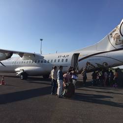 So we were diverted to Bagan because of the fog in Mandalay. Rather than taking us to the terminal we sat on the tarmac....literally! Hiding under the plane for shelter. Poor Yianni was so unwell andもっと詳しく