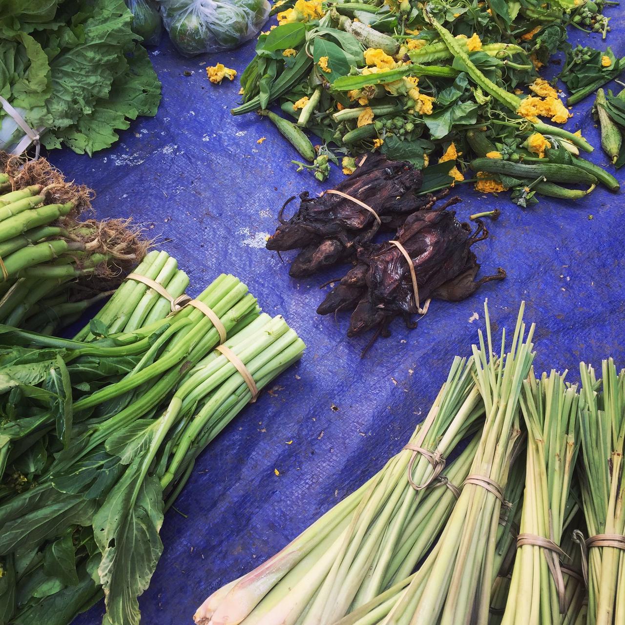 Serving up the local delicacies! Anyone fancy some sun-dried rat with their Bok Choy?!
