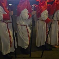 Tonight we will attend the procession of the Last Supper and then around midnight, the procession of Jesus being beaten where the Confraternity members bear the cross through the streets and beat themselves with whips. Very somber.Read more