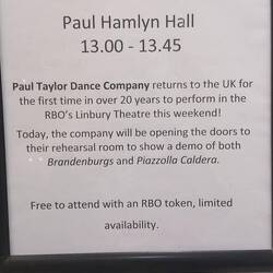 Free lunch time rehearsal at the Royal Opera House in Covent Garden. Excerpts from the Paul Taylor Dance Company's Brandenburgs and Piazzolla Caldera.