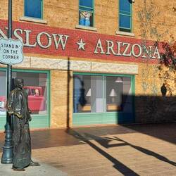 Breakfast at the Cameleon Cafe then stood on the corner of Winslow Arizona. Short drive to the Meteor Crater and Twin Arrows. 3 hours to Monument Valley then a drive round the park. Arrived at theRead more